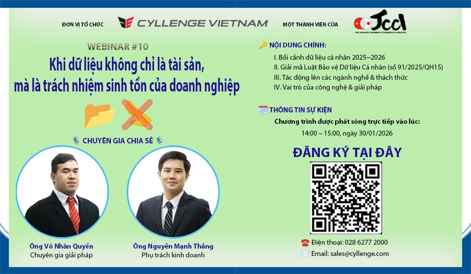 Trong giai đoạn 2025-2026, dữ liệu cá nhân không còn đơn thuần là “tài sản số” mà đã trở thành yếu tố sống còn, gắn trực tiếp với trách nhiệm pháp lý, uy tín thương hiệu và khả năng tồn tại lâu dài của doanh nghiệp. Trong 60 phút, các chuyên gia hàng đầu từ CYLLENGE VN sẽ lần lượt tiến hành "giải mã" Luật Bảo vệ Dữ liệu Cá nhân số 91/2025/QH15 I. Bối cảnh dữ liệu cá nhân giai đoạn 2025-2026 II. Giải mã Luật Bảo vệ Dữ liệu Cá nhân (Luật số 91/2025/QH15) III. Tác động lên các ngành nghề & thách thức thực tiễn IV. Vai trò của công nghệ & giải pháp |